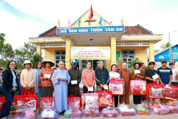 Chư Tôn đức Ni Phân ban Ni giới khu vực Bình Dương cũ mang yêu thương đến với đồng bào chịu thiệt hại do thiên tai