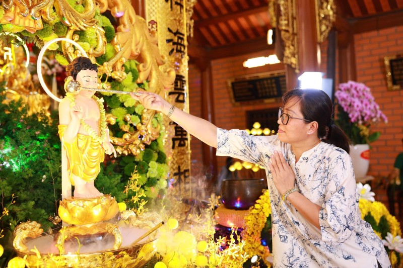 Buổi lễ đã trang nghiêm cử hành nghi thức niêm hương bạch Phật, tán hoa, lục cúng, lễ tắm Phật và rước hoa đăng.