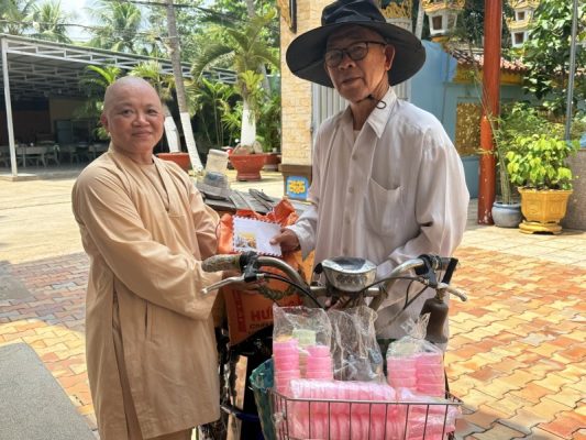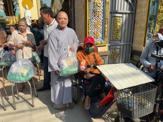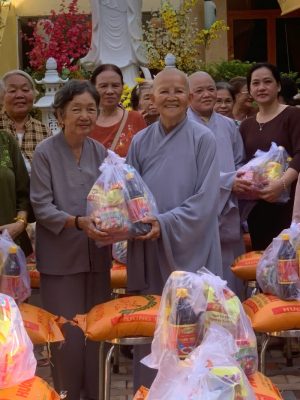 Mỗi phần quà trị giá khoảng 400 ngàn đồng, gồm 10 kg gạo, mì gói, dầu ăn, đường, nước mắm, bột nêm và phong bì. Tại buổi trao quà, Sư cô TN. Diệu Tâm đã động viên, chia sẻ khó khăn với người nghèo, hộ gia đình khó khăn, người già neo đơn, người tàn tật xe lăn .v.v…, chúc bà con dồi dào sức khỏe, đón mùa Vu lan Báo hiếu an lành, hạnh phúc.