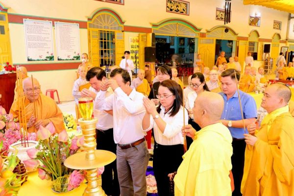 Về phía quan khách có: Bà Lê Huỳnh Lê – Phó Bí thư Đảng ủy xã Thường Tân; ông Phạm Ngọc Uy – Chủ tịch UBMTTQVN xã; ông Lê Văn Hưng – Phó Chủ tịch HĐND xã; ông Lê Văn Tưởng – Phó trưởng Ban Pháp chế HĐND xã; bà Huỳnh Thị Mỹ Trâm – Bí thư Chi bộ ấp Suối Sâu; bà Ngô Thị Hồng Vân – Đảng Ủy viên, Phó Chủ tịch Ủy ban MTTQVN xã Bắc Tân Uyên; bà Thái Hồ Tuyết Minh – Phó ban Văn hóa Xã hội HĐND xã; bà Vũ Thị Kim Phượng – Phó ban Kinh tế Ngân sách HĐND xã và đông đảo quý Phật tử gần xa đồng tham dự buổi lễ.