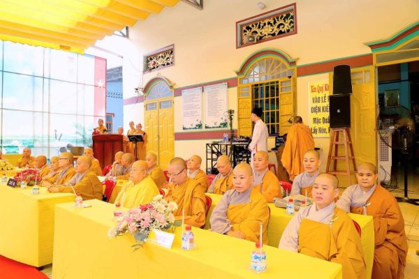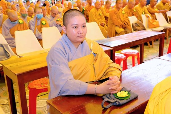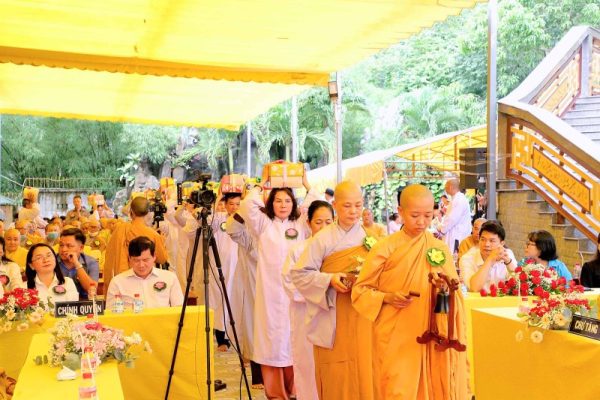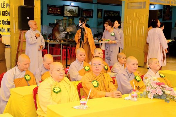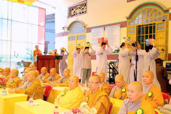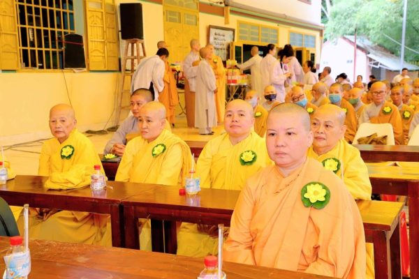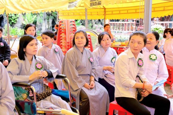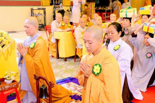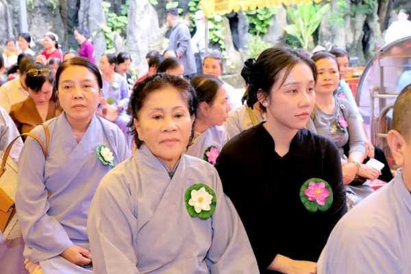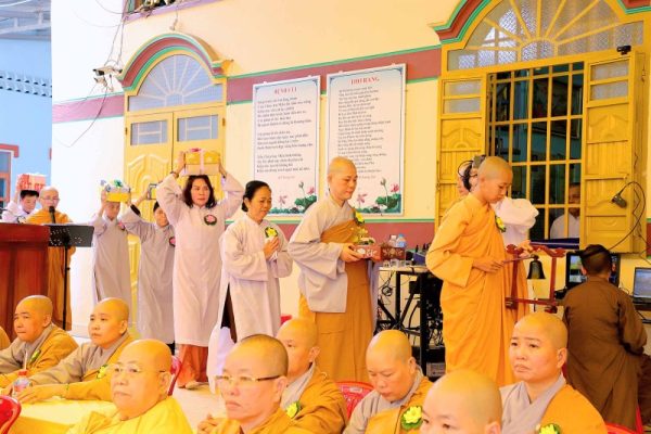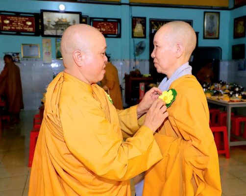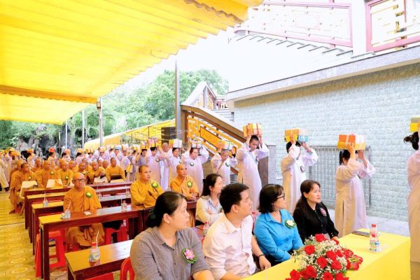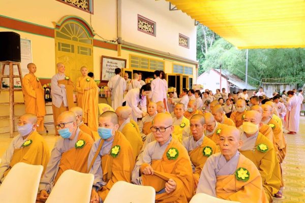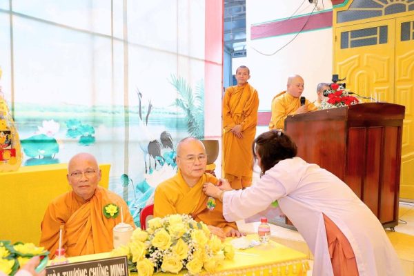 Dưới bóng huỳnh y của chư Tôn đức Tăng Ni, quý Phật tử Tịnh xá An Lạc đã trang nghiêm cài những đoá hoa sen vàng lên ngực áo của chư Tôn đức Giáo phẩm, tượng trưng cho sự thanh khiết, tôn kính và đức tính thanh cao của quý Ngài, bày tỏ niềm tri ân đến những bậc Thầy hướng đạo cho hàng Phật tử. Đồng thời quý Phật tử cài hoa sen hồng và trắng lên ngực áo của đại biểu chính quyền các cấp, quý Phật tử tham dự tại đạo tràng.