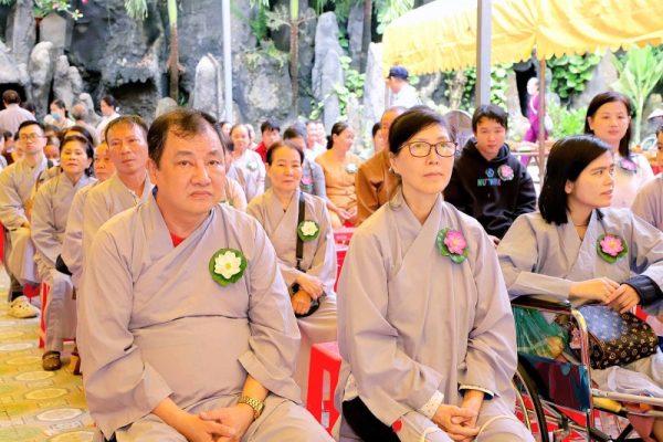 Mở đầu buổi lễ, chư Tôn đức chứng minh cùng đại chúng đã lắng đọng tâm tư niêm hương, cầu nguyện cho thế giới hòa bình, Phật pháp xương minh, đồng cầu nguyện cho Tổ tiên ông bà cha mẹ trong nhiều đời nhiều kiếp đã quá vãng được siêu sinh Tịnh độ, cha mẹ hiện tiền phúc thọ tăng long.