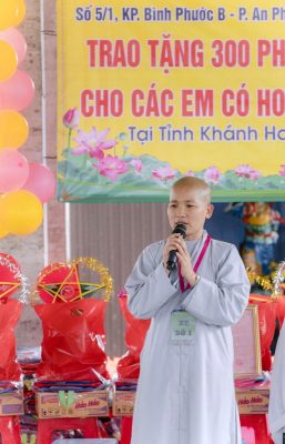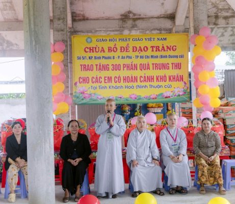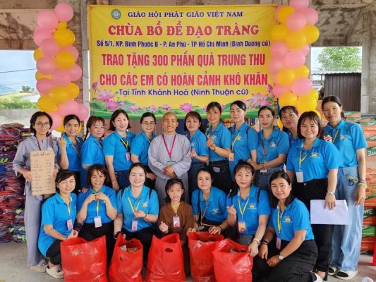 Được sự hướng dẫn của Ni sư Thích nữ Từ Thảo – Ủy viên HĐTS, Phó trưởng Phân ban kiêm Trưởng ban Pháp chế Phân ban Ni giới T.Ư, Phó ban Trị sự kiêm Phó ban Thường trực Ban Kinh tế Tài chánh GHPGVN TP.HCM, Trụ trì Chùa Bồ Đề Đạo Tràng. Chư Ni và quý Phật tử trong đạo tràng Chùa Bồ Đề Đạo Tràng đã trao tặng hơn 300 phần quà Trung thu, mỗi phần quà trị giá 400 nghìn đồng, tổng trị giá phần quà là 120 triệu đồng, với mong muốn mang đến cho các em thiếu nhi nhất là trẻ em có hoàn cảnh khó khăn có một mùa Trung thu trọn vẹn, ấm áp và đủ đầy.