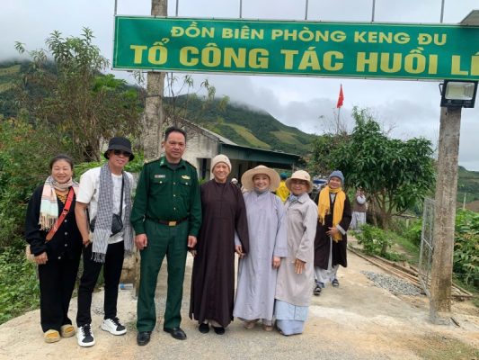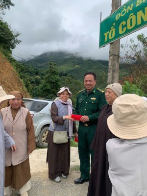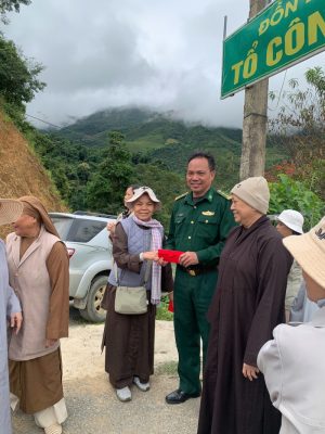 Chiều 24/10, tại Bảng Tiền Tiêu, Nậm Cắn, Kỳ Sơn, tỉnh Nghệ An chư Tôn đức Ni đã thăm hỏi và trao tặng 150 suất quà (mỗi suất gồm 700 ngàn đồng  và 01 phong bì tiền mặt 500 ngàn) tới các gia đình có hoàn cảnh khó khăn sau cơn bão lũ. Nhân đây, đoàn đã tặng Biên phòng Nậm Cắn 01 tủ lạnh 280 lít trị giá 4.500.000 đồng.