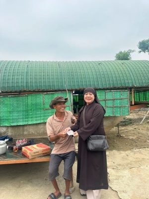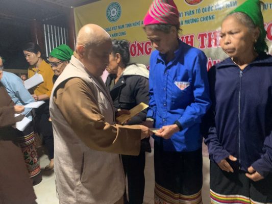 Chiều cùng ngày, chư Tôn đức Ni đã tiếp tục đến Mậu Đức, Quỳ Hợp, Nghệ An trao tặng 200 phần, mỗi phần là 1.300.000 đồng.