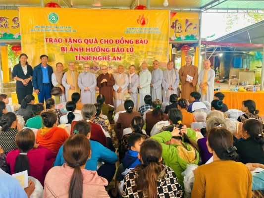 Những phần quà mang cả tấm lòng yêu thương, tinh thần nhân ái của chư Tôn đức Ni, quý Phật tử mạnh thường quân đồng lòng hướng về san sẻ tình người trong lúc khó khăn, là minh chứng sinh động cho sự gắn kết giữa đạo pháp và dân tộc, đặc biệt trong những lúc người dân gặp thiên tai, hoạn nạn, giúp bà con nơi vùng bão lũ thêm ấm lòng, vững bước trang trải để sửa sang lại nhà cửa và tiếp tục duy trì đời sống thường nhật.