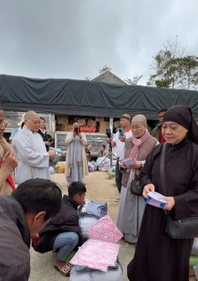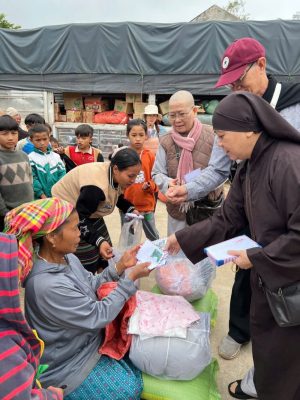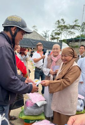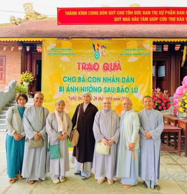 Mưa lớn kéo dài đã gây ngập lụt diện rộng, sạt lở đất nghiêm trọng ở nhiều khu vực tại miền Trung và gây ra thiệt hại nặng nề cho các địa phương, nhiều khu vực bị chia cắt, cô lập. Từ ngày 24 – 26/10/2025, chư Tôn đức Ni thuộc Phân ban Ni giới khu vực Bình Dương cũ đã mang yêu thương, sẻ chia nỗi đau sau bão lũ số 10 và 11 đến với người dân chịu thiệt hại do thiên tai các tỉnh miền Trung.