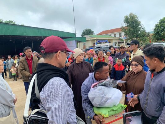 Chư Tôn đức Ni Phân ban Ni giới khu vực Bình Dương cũ mang yêu thương đến với đồng bào chịu thiệt hại do thiên tai