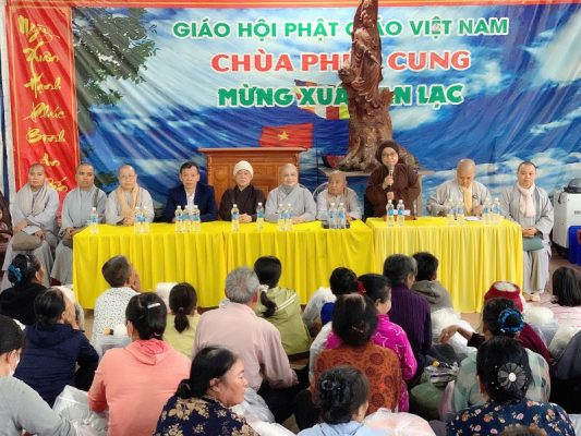 Phái đoàn do Ni trưởng Thích nữ Pháp Như – Phó ban Trị sự, Phó trưởng Phân ban Thường trực Phân ban Ni giới GHPGVN TP.HCM làm Trưởng đoàn; NT. Thích nữ Như Định – Ủy viên BTS, Phó Phân ban Ni giới Phật giáo TP.HCM; Ni sư TN. An Liên – Ủy viên BTS, Phó ban Thường trực Ban Từ thiện Xã hội PG thành phố; cùng chư Tôn đức Ni là Ủy viên Ban Trị sự PG TP.HCM, trụ trì các tự viện khu vực Bình Dương (cũ) đồng tháp tùng.