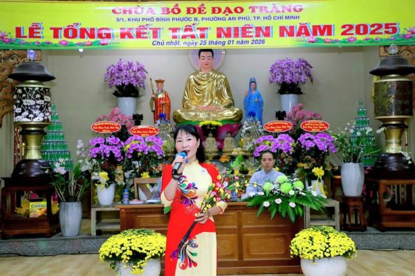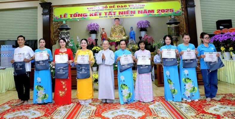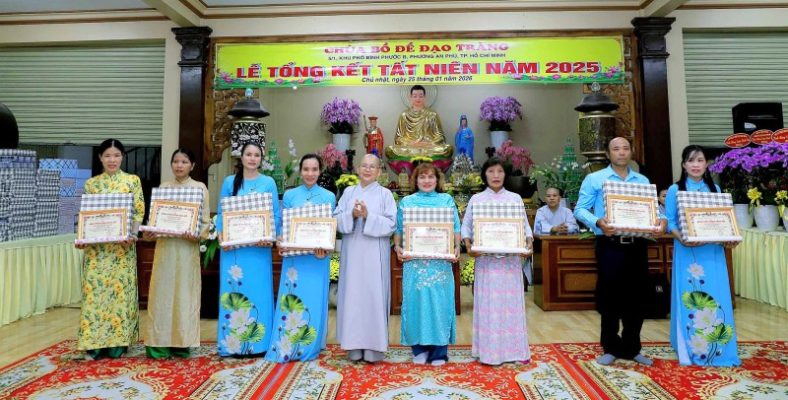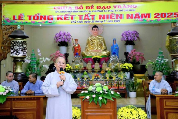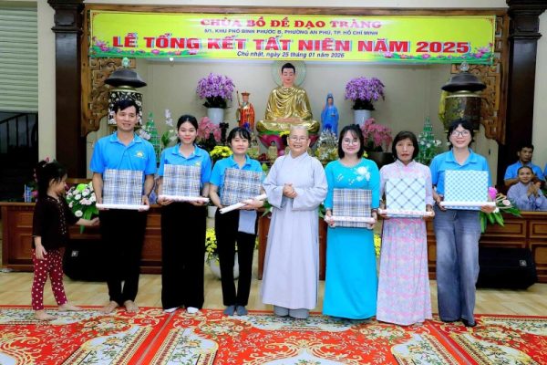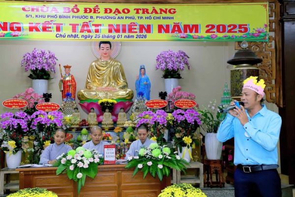 Chiều ngày 25/01/2026 (nhằm ngày 7/12 năm Ất Tỵ), trong không khí trang nghiêm và ấm áp những ngày cuối năm, Chùa Bồ Đề Đạo Tràng (KP. Bình Phước B, P.An Phú, TP. Hồ Chí Minh), đã long trọng tổ chức Lễ tổng kết tất niên hoạt động Phật sự năm 2025 và triển khai kế hoạch phương hướng hoạt động năm 2026.