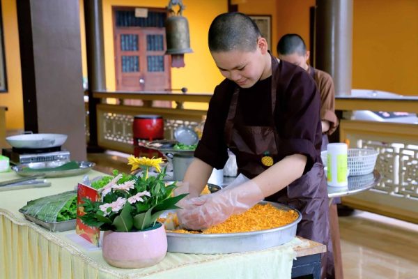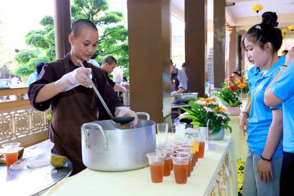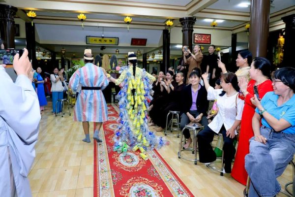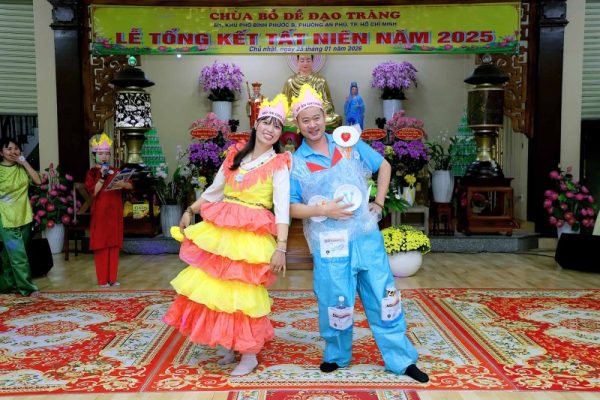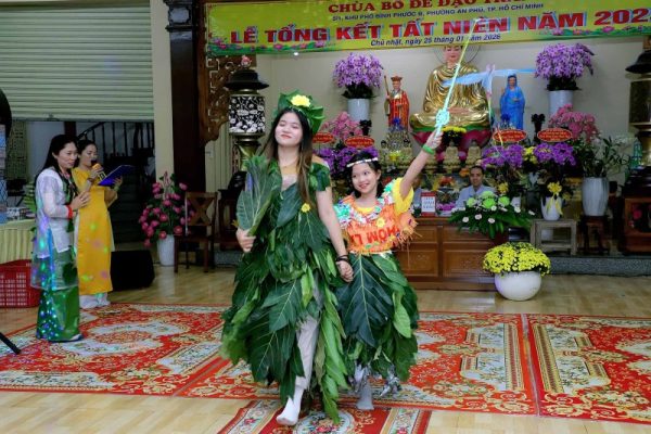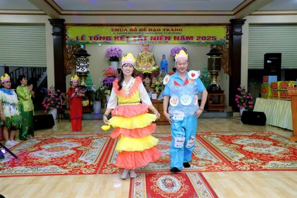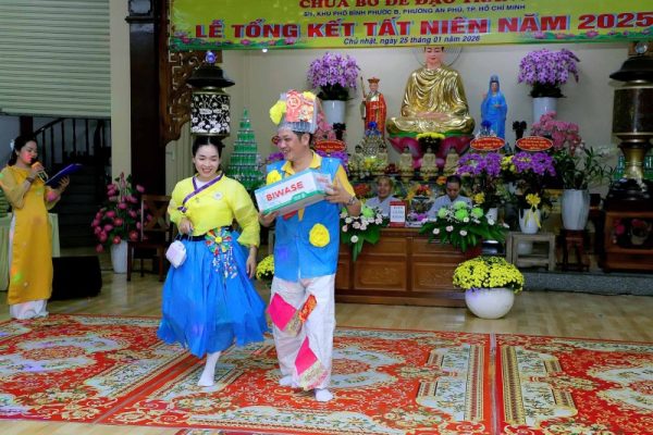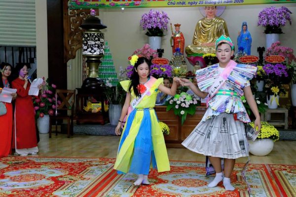 Bên cạnh phần lễ trang nghiêm, chương trình tất niên còn mang đậm không khí sinh hoạt cộng đồng vui tươi và gắn kết. Hội thi nấu ăn dành cho các chú tiểu đã mang đến những khoảnh khắc hồn nhiên, sinh động, góp phần giáo dục kỹ năng sống trong tinh thần tu học. Cuộc thi văn nghệ, kết hợp thiết kế thời trang giấy mang thông điệp ý nghĩa về ý thức bảo vệ môi trường, sống xanh và tiết giảm tiêu thụ đã được trình diễn trong không khí vui tươi, hoan hỷ. Hoạt động này không chỉ góp phần nâng cao nhận thức cộng đồng về việc tái chế và sử dụng tài nguyên một cách có trách nhiệm, mà còn thể hiện rõ tinh thần tu học gắn liền với đời sống, đem giáo lý từ bi và chánh niệm ứng dụng vào từng hành động cụ thể.