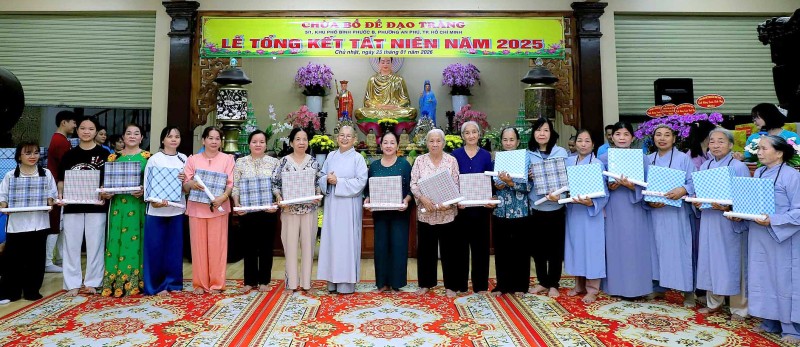 Buổi lễ do Ni sư TN. Từ Thảo – Ủy viên HĐTS, Phó trưởng Phân ban kiêm Trưởng ban Pháp chế Phân ban Ni giới T.Ư, Phó ban Trị sự kiêm Phó ban Thường trực Ban Kinh tế Tài chánh GHPGVN TP.HCM, Trụ trì Chùa Bồ Đề Đạo Tràng, đồng thời là Hội trưởng Hội Từ thiện Chùa Bồ Đề Đạo Tràng – chủ trì và chứng minh; cùng chư Ni Bổn tự, toàn thể hội viên Hội Từ thiện đồng trở về tham dự, chung niềm hoan hỷ trong ngày tổng kết cuối năm.